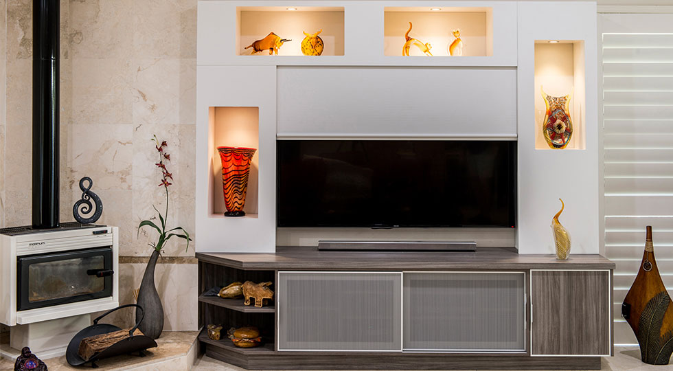 Many people see the modern panel TV as an eyesore – especially when not in use. Would you like to conceal the Television and electronic equipment and add some attractive shelving?
